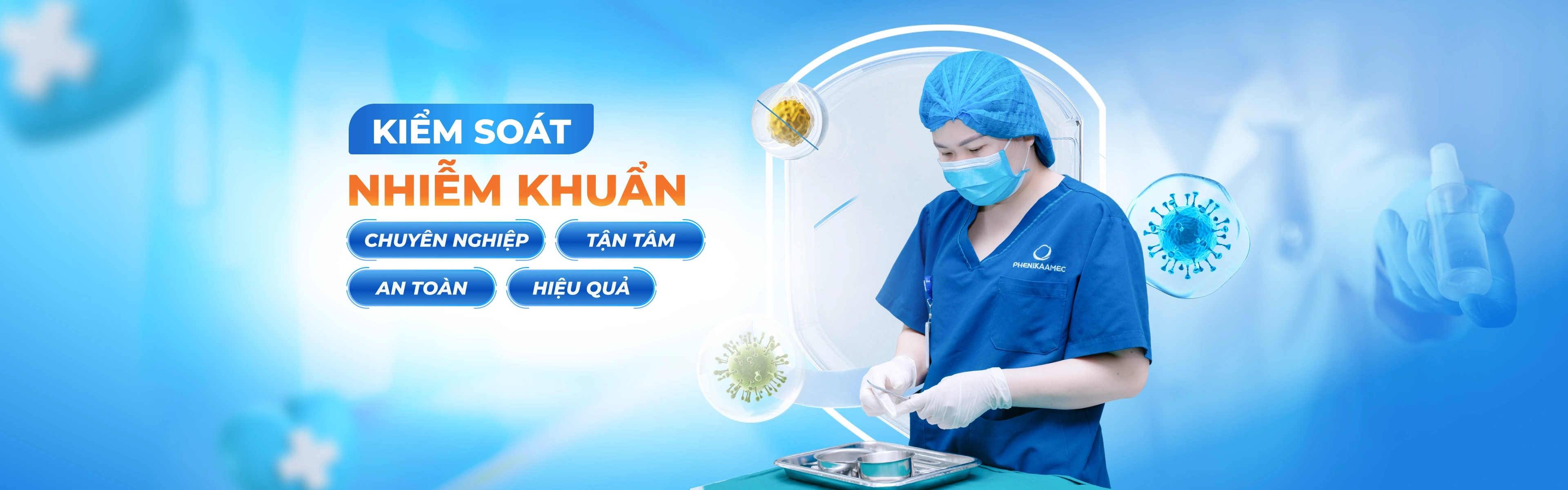 Khoa Kiểm soát Nhiễm khuẩn Bệnh viện Đại học Phenikaa là một trong những đơn vị được ưu tiên hàng đầu để đảm bảo môi trường bệnh viện an toàn, ngăn ngừa và kiểm soát sự lây lan của các bệnh nhiễm khuẩn trong quá trình khám, chữa bệnh. Với phương châm “Giảm nhiễm khuẩn bệnh viện – Giảm nỗi lo bệnh nhân”, Khoa Kiểm soát Nhiễm khuẩn không ngừng nỗ lực tạo môi trường bệnh viện an toàn, mang đến sự yên tâm cho người bệnh, thân nhân và đội ngũ y bác sĩ.